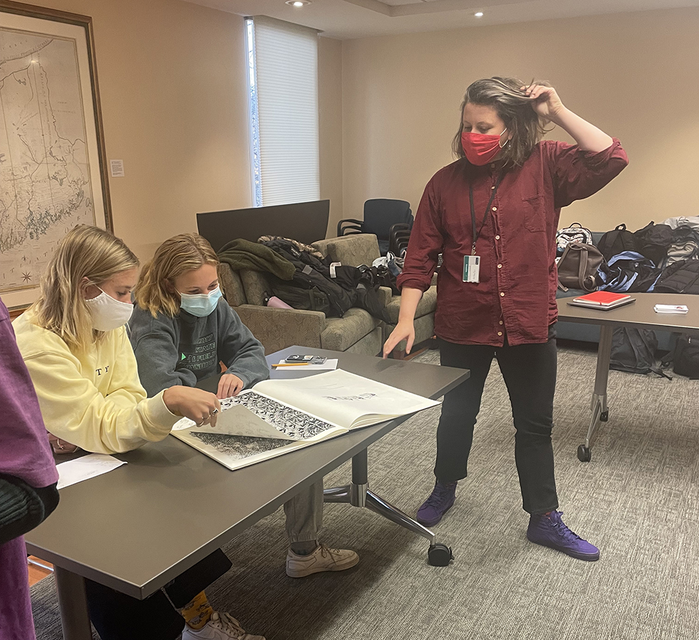 Bowdoin & The Book seeks to elevate conversations about the “book,” broadly defined to extend from oral traditions to manuscripts, printed books, and digital media, to serve as the conduit for an exploration of the intersections of history, technology, culture, language, literature, economics, art, representation, and more. By positioning Bowdoin College Library’s George J. Mitchell Department of Special Collections & Archives as a site of encounter and to situate collections-based study and research within the rich landscape of Maine-based book artists, craftspeople, and booksellers–we hope this series and related efforts will provide research and pedagogical support to effectively engage in high-impact learning across disciplines and co-curricular programs, promote discursive and creative thinking, confront a diversity of perspectives, and acquire hands-on and field work experience.